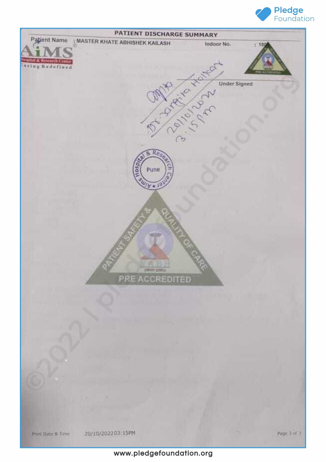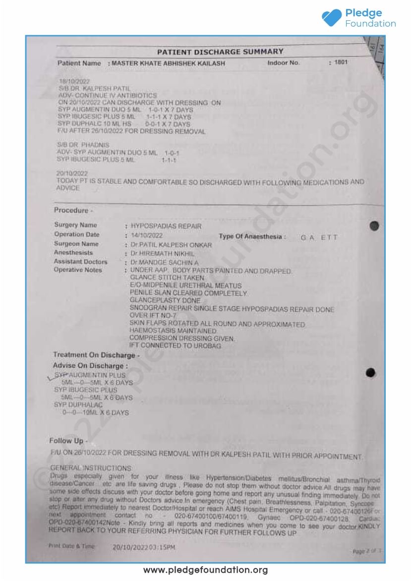 The child is under the care of Dr. Kalpesh Patil. Also, Abhishek’s clinical condition is not good since he is unable to pass urine, and due to this he is suffering from severe abdominal pain.